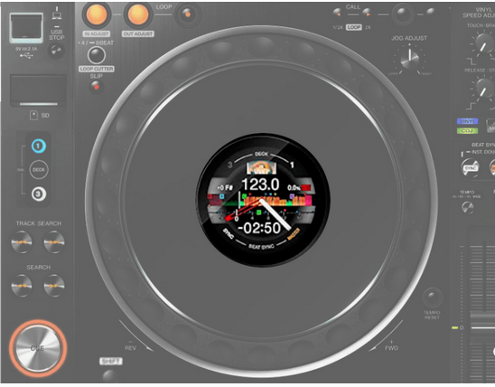这是一项容易的改进,因为该技术已经存在于Pioneer DJ的设备。例如DDJ-1000上的缓动盘可以显示BPM、波形、调性、专辑封面和指针位置等信息。