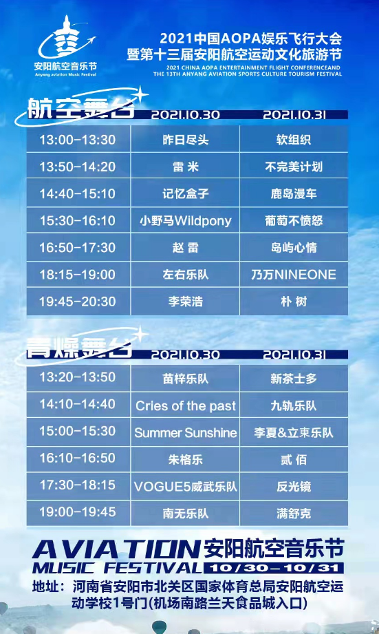 10月30日至31日,让我们走进2021安阳航空音乐节现场,用音乐释放自我,用歌声传递态度,