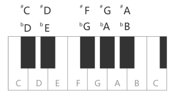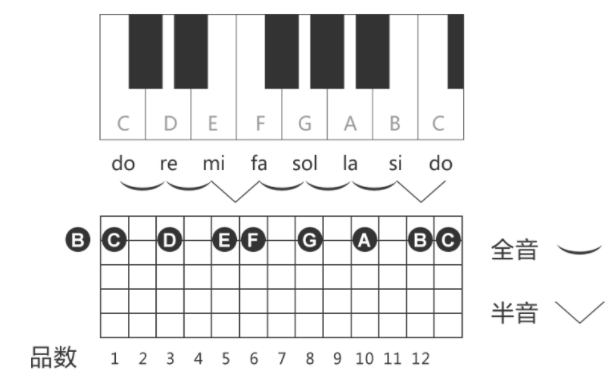 全音和半音是音乐中的基本计算单位,半音是音乐中最小的单位,全音由两个半音组成。从钢琴键盘上来看,每两个相邻键为半音关系,相隔一个键的两键之间为全音关系。如do与re之间相隔了一个黑键(#do),它们之间则是全音关系;而mi与fa之间没有黑键,说明它们是相邻因,它们之间为半音关系。
